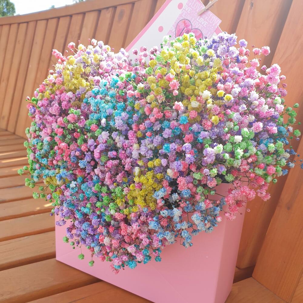 Открыточка с вашими пожеланиями – 1 шт.гипсофила радужная – 9 шт.конверт картонный в ассортименте плотный крафт – 1 шт.