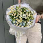 Букет Бохо из оксипеталума и танацетума