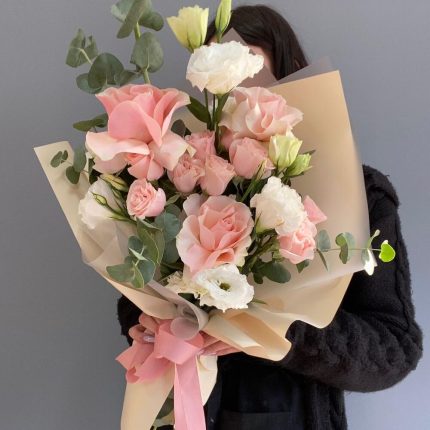 Альстромерии, Кустовые розы, Лизиантусы, Пионовидные розы, Розы, Ромашки