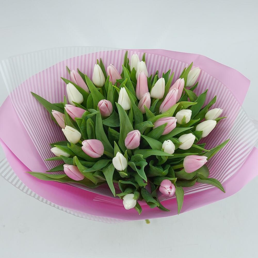 31 бело-розовый тюльпан с оформлением